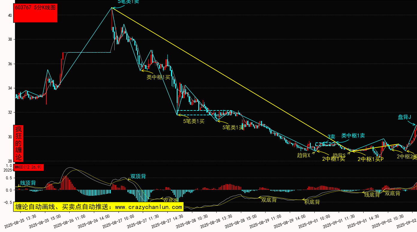 中马传动 603767 5分钟K线级别,所属概念:新能源汽车