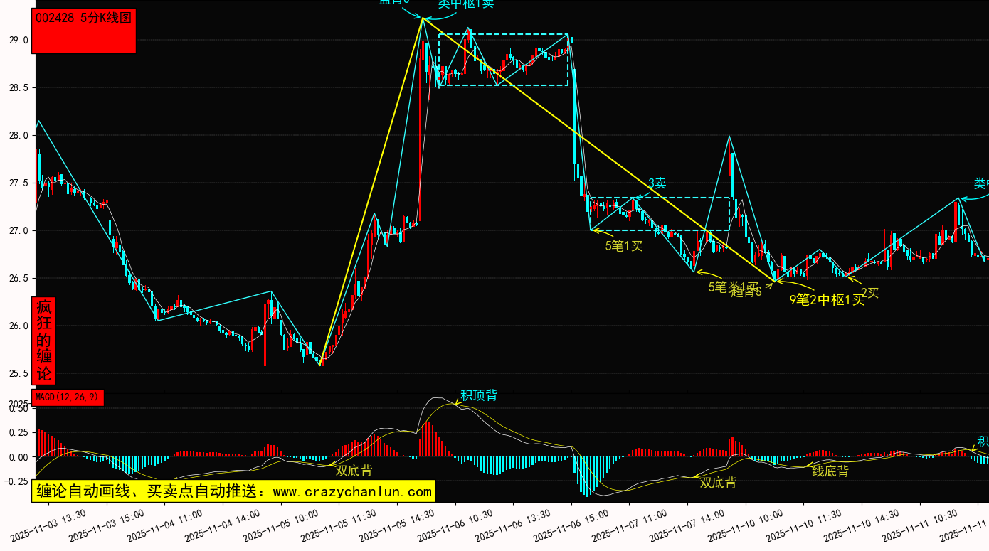 云南锗业 002428 5分钟K线级别,所属概念:第三代半导体